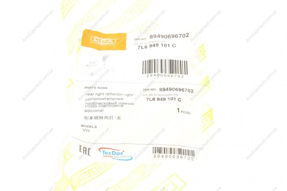 - DPA (ДПА) 89490696702 подходит к маркам/моделям авто: