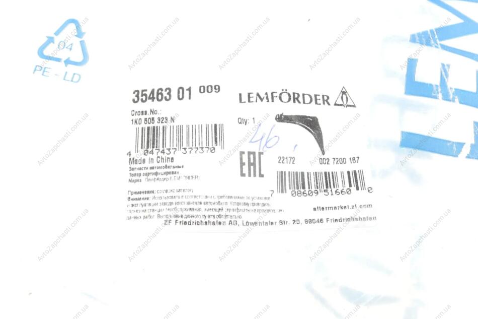 Продукция Lemförder поставляется на конвейеры BMW, Mercedes-Benz, Audi, Volkswagen, Ford, Volvo и многих других. Это означает, что вы получаете детали, разработанные специально для вашего автомобиля!