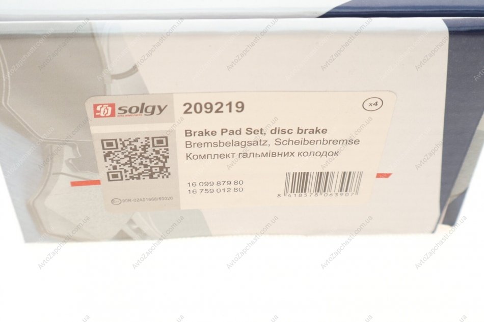 Тормозные колодки дисковые Solgy (Солджи) 209219 цена 823 грн