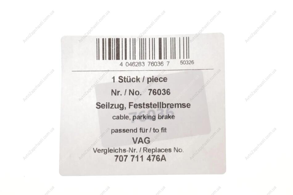 - Трос ручника AIC (Аік) 76036 підходить до марок / моделів авто: