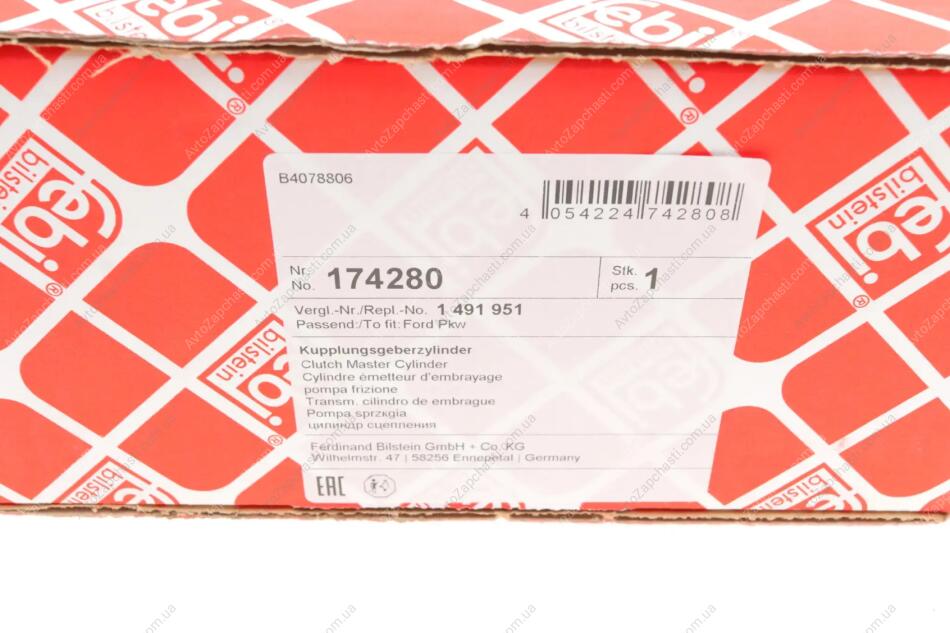 Головний циліндр зчеплення FEBI BILSTEIN (Фебі) 174280 ціна 2765 грн