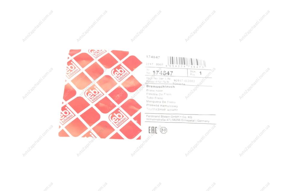 - Гальмівніий шланг FEBI BILSTEIN (Фебі) 174847 підходить до марок / моделів авто: