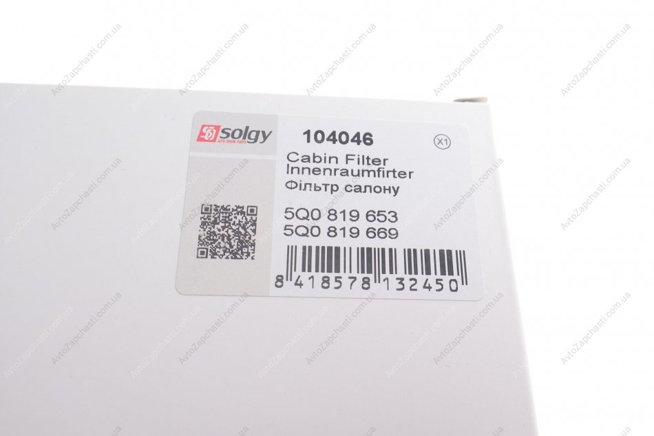 - Фільтр салону Solgy (Солджи) 104046 підходить до марок / моделів авто: