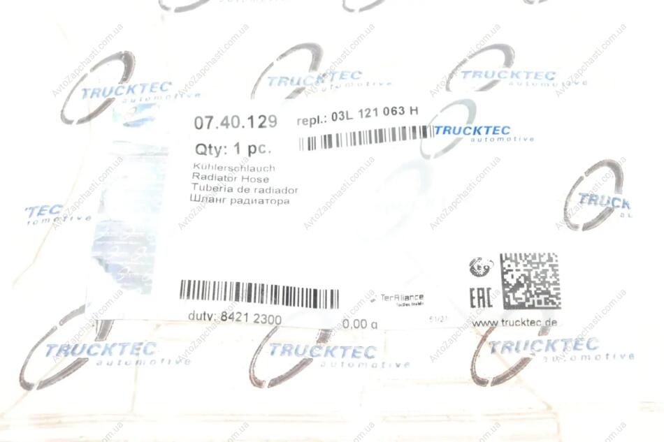- Патрубки системи охолодження TRUCKTEC (Трактек) 07.40.129 підходить до марок / моделів авто: